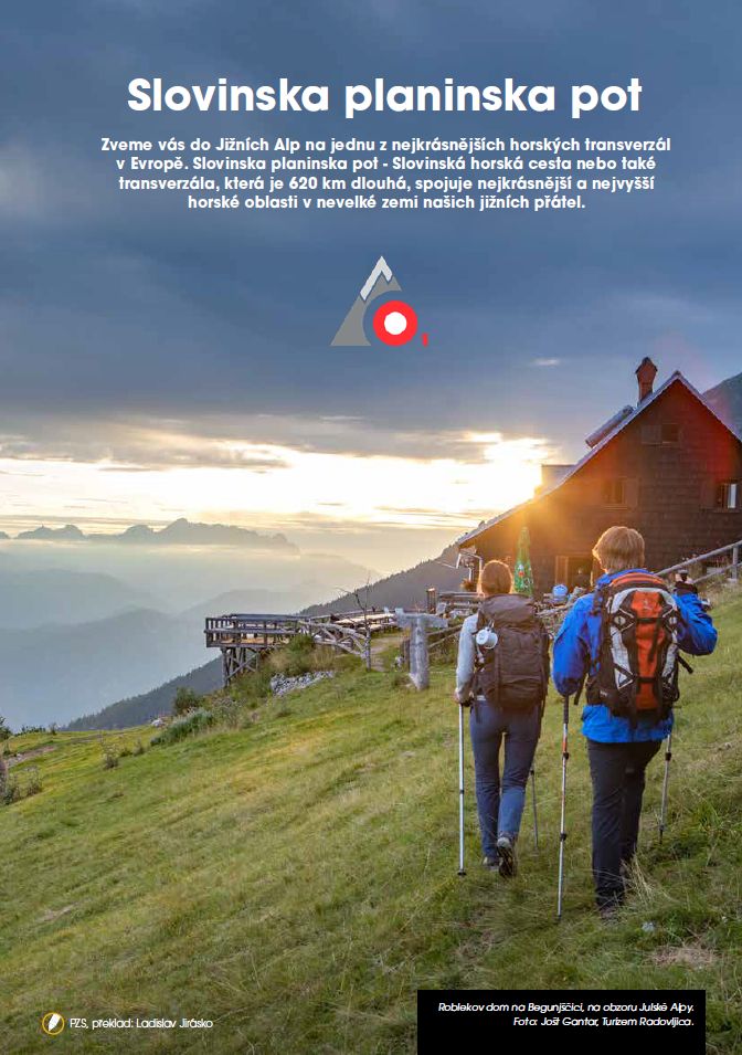 Ve spolupráci s PZS vás zveme do Jižních Alp na jednu z nejkrásnějších horských transverzál v Evropě. Slovinská horská cesta, která je je jednou z nejstarších dálkových tras v Evropě i na světě, je dlouhá 620 km a spojuje nejkrásnější a nejvyšší horské oblasti v zemi našich jižních přátel. Vše o SPP najdete na stranách 69-80.