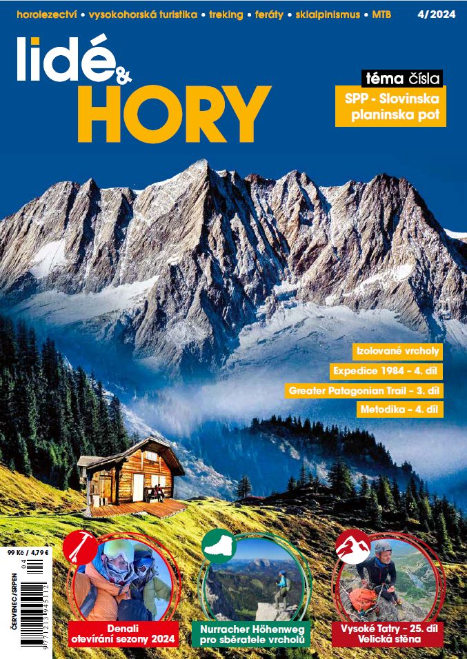 K nosným článkům čísla patří příběh a reportáž Petra Dismana o výstupu jeho čtyřčlenného týmu na vrchol Denali – tento výstup zahájil na nejvyšším vrcholu Severní Ameriky letošní sezonu 2024. Pro bikery jsme připravili pozvání na jednu z nejkrásnějších túr ve Východních Alpách – za tuto túru je označován výjezd na sedlo Eisjöchl v jihotyrolské alpské oblasti Texelgruppe. Radek Jaroš nás v dalším dílu tipů na zajímavé výstupy v horách na celém světě seznamuje s jeho novým projektem Nejizolovanější vrcholy světa. I v tomto čísle najdete na 96 stranách mnoho zajímavého ze světa hor a alpinismu.