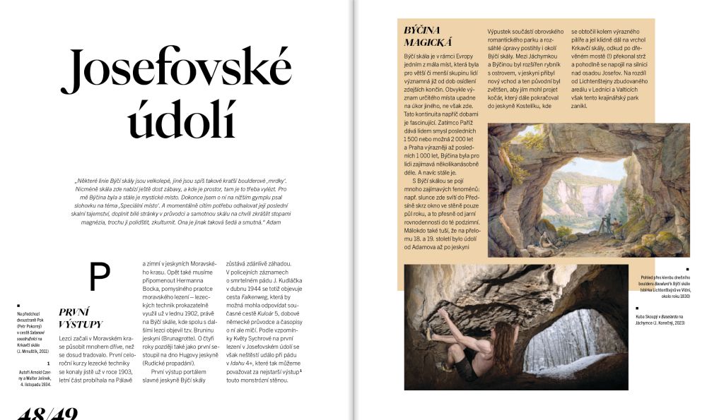Když se bratři Bockové pustili do objevování Pavlovských vrchů, ještě netušili, že již o pár let později fenomén lezení uchvátí značnou část předválečného Brna. A stejná situace je v Brně i dnes. Díky Adamu Ondrovi, jenž již léta posouvá laťku obtížnosti stále výš, vznikají i dnes výzvy, o nichž se mluví doslova po celém světě. Moravské skály už nejsou jen specifikem České republiky, ale tématem probíraným po celém světě. Pusť se s námi do objevování pozadí vzniku legendárních cest, jako je Čarodějův učeň, Perla východu, nekonečný Příklepový strop, oblíbená Épitá nebo stále nezopakovaný boulder Terranova, a poznej důkladněji legendy zdejšího lezení, Tomáše „Sviště“ Pilku, Frantu Plška a další.