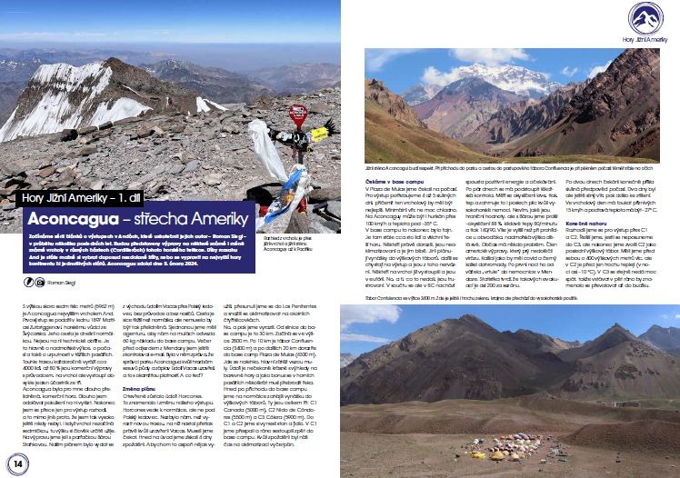 Seriál článků o výstupech na známé i méně známé vrcholy v různých částech jihoamerických And začíná výpravou na nejvyšší vrchol tohoto nejdelšího horského pásma na světě – Aconcaguu. Autor na tento 6962 m vysoký vrchol vystoupil 5. února 2024, aktuální informace na str. 18.