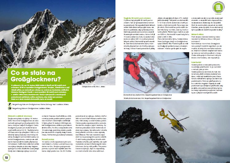 O tragické lednové nehodě asi 50 m pod vrcholem Großglockneru i o tom, zda zkušený horolezec a partner zemřelé ženy, který nehodu přežil, může být klasifikován jako vůdce tohoto nešťastného výstupu a může být označen za osobu odpovědnou za smrt své partnerky, str. 12-13.