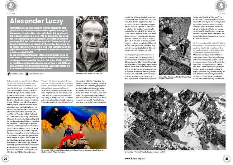 Alexander Luczy nebo také Šaňo, který se narodil pod Vysokými Tatrami. patří bezesporu k osobnostem československého alpinismu. Ve Vysokých Tatrách znal každý kout, po emigraci v roce 1968 se alpinismu věnoval i ve Švýcarsku. Jako horský vůdce TANAPu sehrál v roce 1996 významnou roli při přijetí Národní asociace horských vůdců Slovenska do mezinárodní asociace UIAGM., str. 20-24.