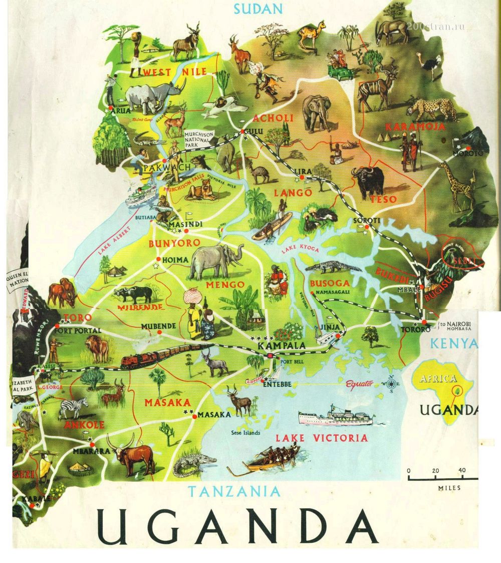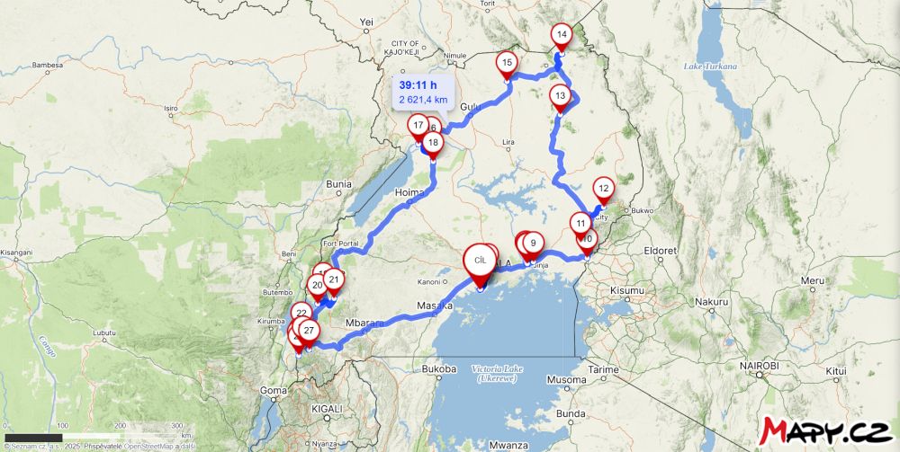Závěr: Uganda je zajímavá země, někteří jsou tak chudí, že nemají ani boty a přesto se usmívají, flora a fauna je úchvatná. Oblasti, kde se vyskytuje Ebola, údajně mají pod kontrolou. Jídlo v místních jídelnách bez potíží za pár kaček. Okruh Ugandou 2620 km.