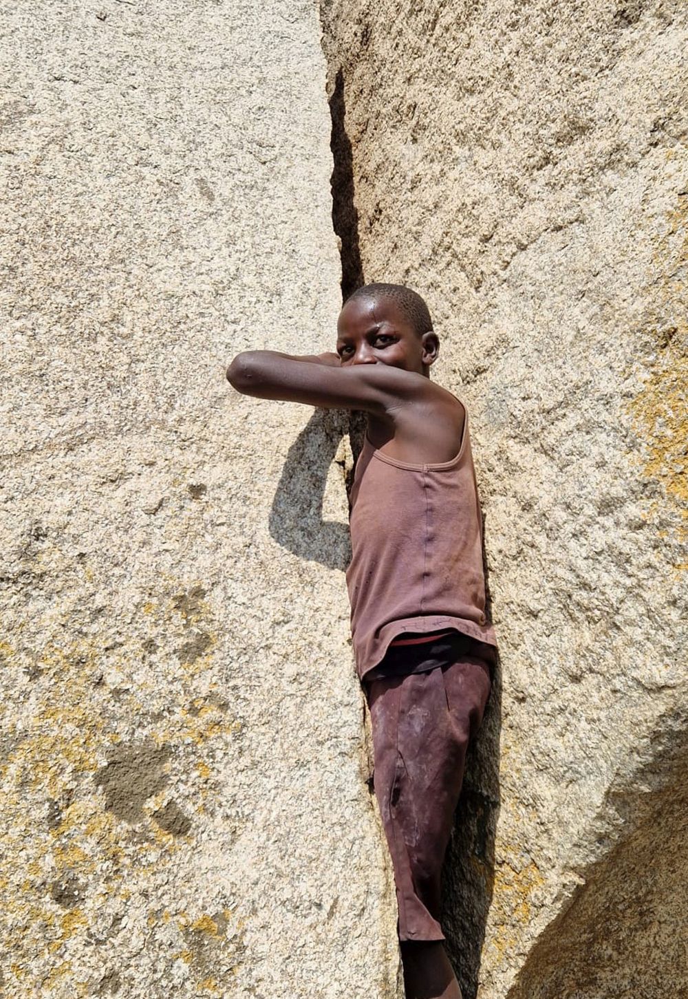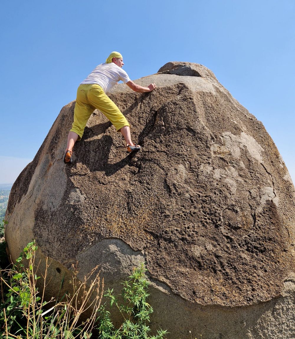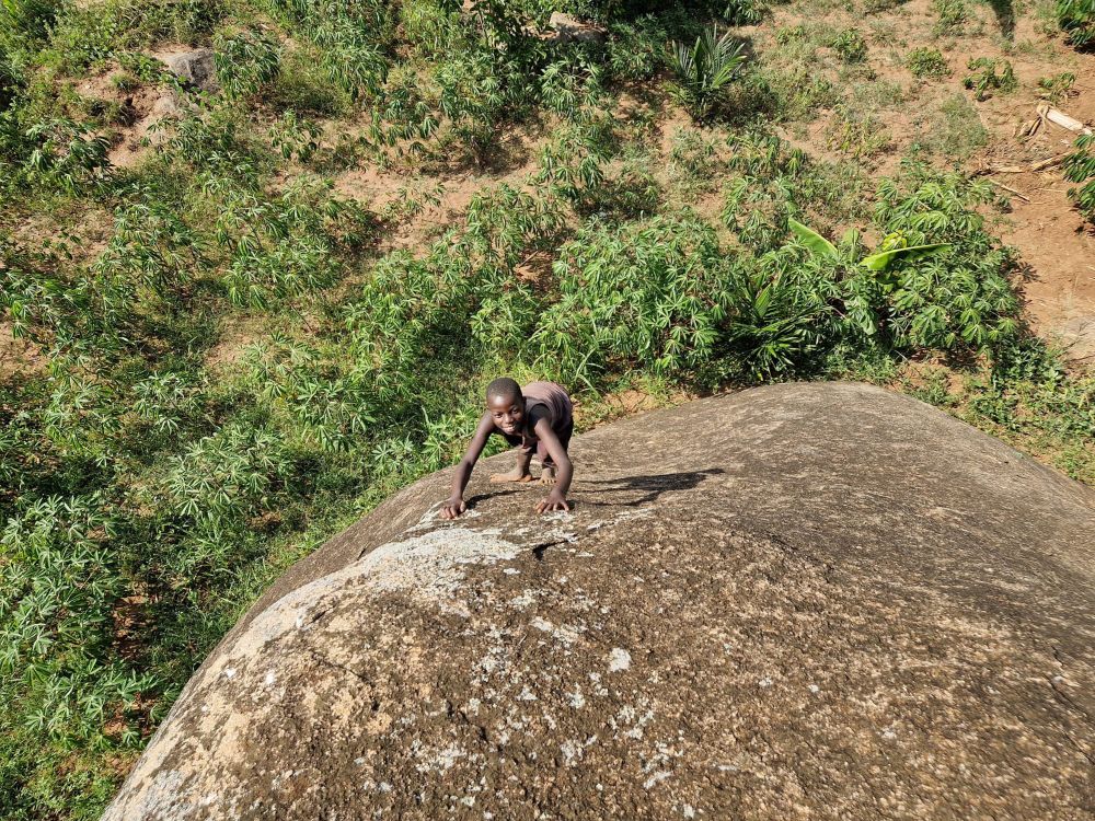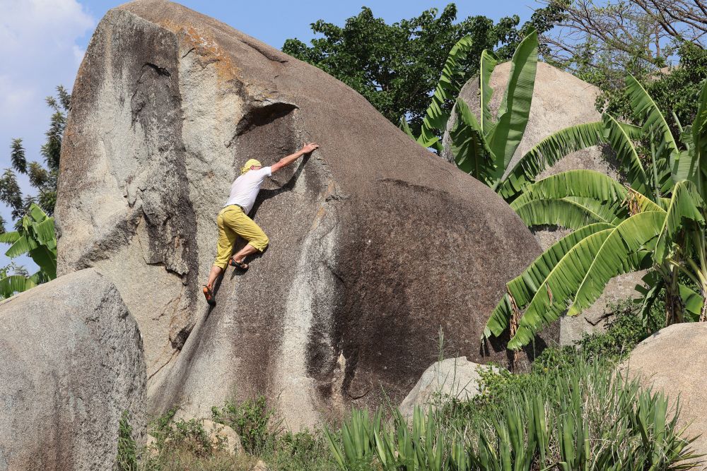 První lezecké zastavení a seznámení s místní žulou u vesničky Kateki A. Oblast: Buteba Hill - Bouldering. Jakmile zaparkujeme auto na cestě, okamžitě se objeví místní. Bude hlídat auto. Obvykle se platí 2 tis. šelinků - 13kč.