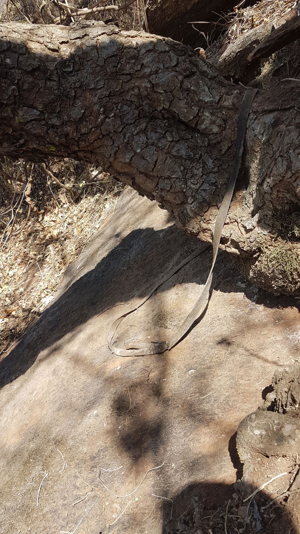 Cesta má název: Great Gully 500 m. Všechny délky natahuji celé lano 60 m, než udělám štand. Stěna je pevná skála ve stínu do 13 hodin. Používáme k zajištění friendy a smyce. Ve čtvrté délce objevujeme starou smyci okolo stromu. Jedinej důkaz, že lezeme správný směrem. Snažíme se vyhýbat starým větvím v koutech, volíme raději pevnou skálu nežli zarostlej kout.