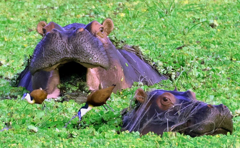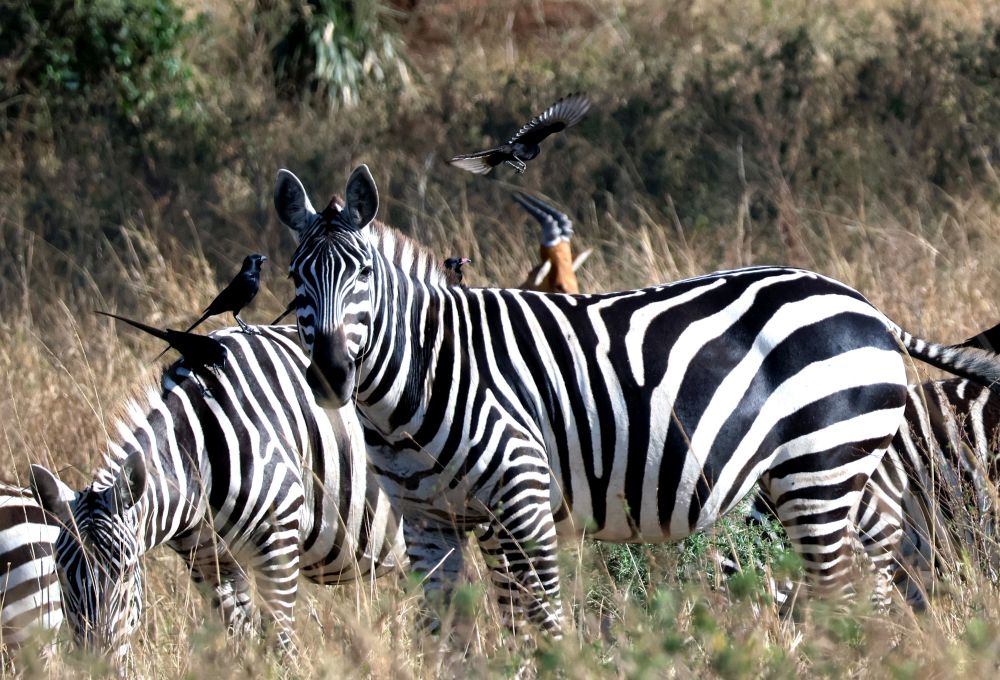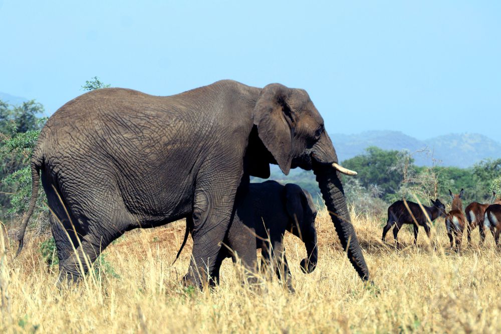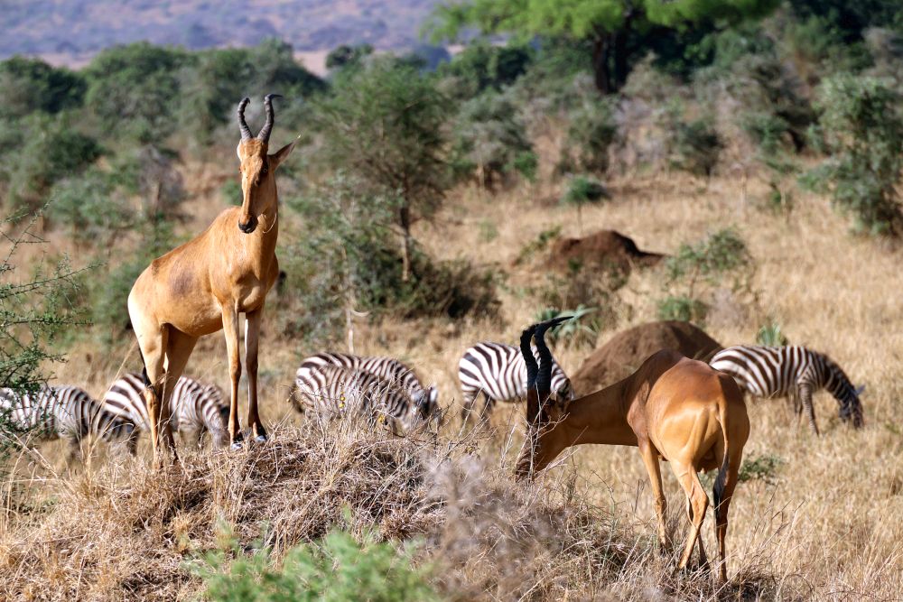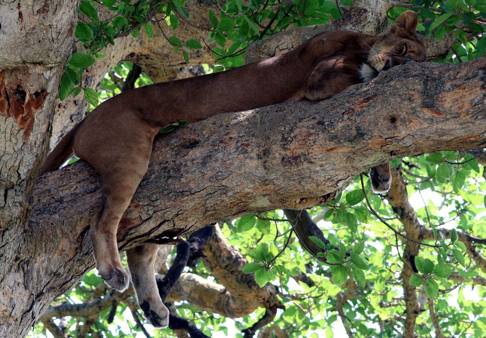 Dále pokračujeme přes národní park Kidepo na hranicích s Jižním Sudánem a Keňou, Murchinson falls NP, Queen Elizabeth NP se zastávkou Equator Monument - kde se fotí každej turista na rovníku, vidíme buvoly, zebry, slony, krokodýly, atilopy, žirafy, stromové lvy, plameňáky, hrochy, hady, ptáky, zkrátka vše, co Afrika nabízí. Spaní ve státních kempech pod stanem - čisté sprchy a wc. Občas jsme dostali rangera kvůli bezpečnosti, kdy kempem procházejí hyeny, sloni,... Na hranicích s Kongem v kempu u řeky nás hlídali vojáci, protože z řeky vylézali hroši na pastvu v kempu.