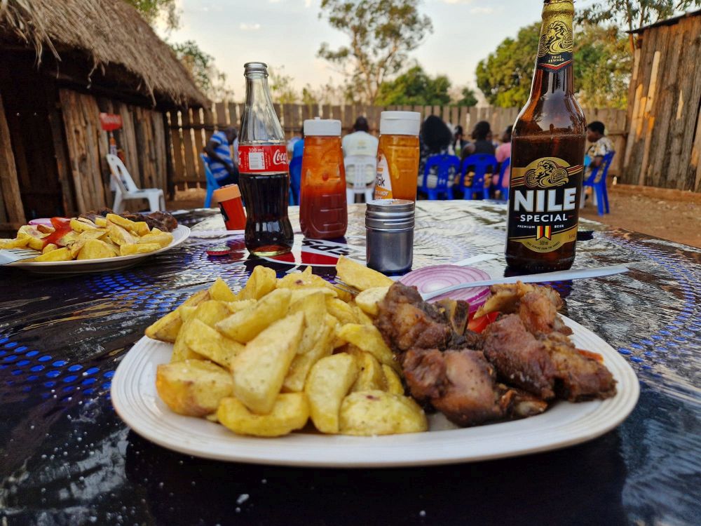 Pokračujeme po silnici do města Busia ležící přímo na hranicích s Keňou. Zastavíme na ulici a auto už nenastartujeme. Ochutnávka místního piva a po hodině auto startuje. Druhý den ráno u levného hotýlku opět nestartuje. Otevřu kapotu, motor má již mnoho místních oprav. Najdu příčinu, uvolněný kabel u baterie - dotáhnu šroub a můžeme pokračovat.