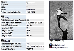 Tak staci si zapisovat csechno co vylezes a mas to tak raz dva. rekl vyxh ze nekteri i za rok.. sam sem se inspiroval Adamem(Adam od 8a) a pisu si cesty od 7a a bouldry od 7A abych toho nezapisoval tuny.. nekdo hlt chce mit zapsane vše, napr 3jku na bradle tak proc ne, je to hra tak si hrajme ;))