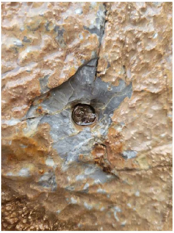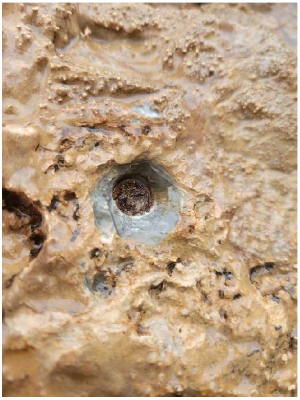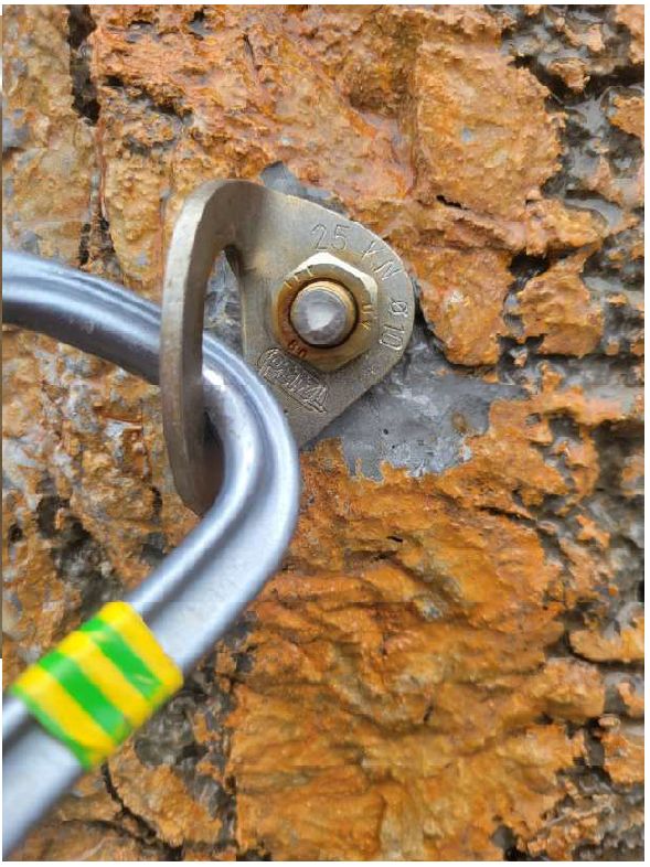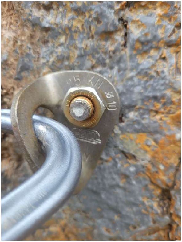 •   Nýt č. 3 (níže pod bodem): Tento prvek byl nalezen zlomený, podobně jako slaňovací bod.