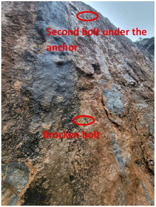 •   Slaňovací bod (anchor): Horní i dolní nýt vykazují selhání.