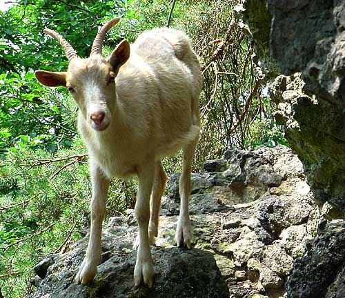 Každopádně přes den je toto stvoření naprosto mírumilovné, s Hopem jsme chvíli s pobavením poslouchali jeho tichounké pomekávání a pak kozlík Hopovi olízal ruce až k lokti. Hop jsa po lezení umyt prohlásil, že můžeme jít.