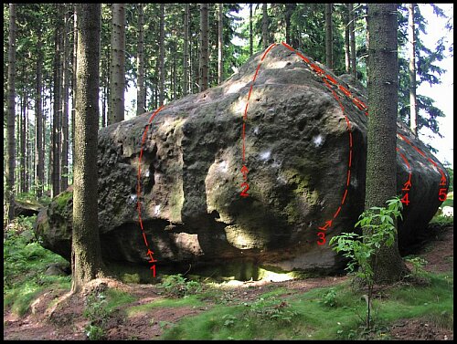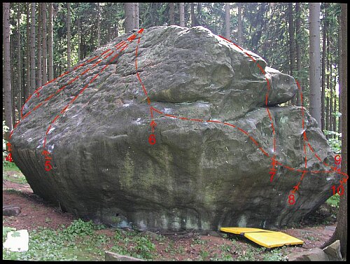 Každopádně až zas bude vedro na Ostaši, zkuste se zajet mrknout na Bor kde je ještě pár možností na nové směry, přikládám zde popis jen kamene který jsme obhospodařily, dalších odhadem 5 kamenů s až 30ti bouldry je u paseky na žlutý, a mnoho kamenů taktéž ošipkovaných, je kolem po lesích.