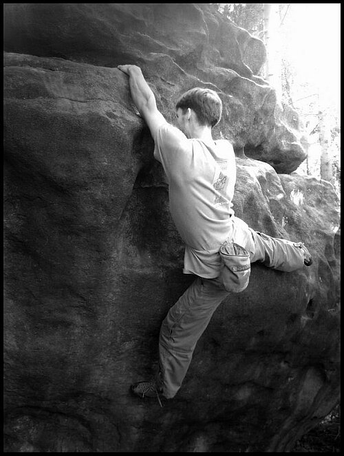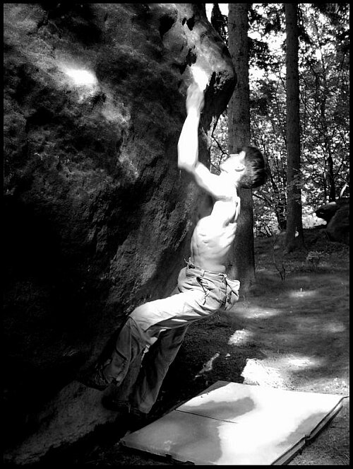 Celej den utekl jak voda a my měli za sebou 10 novejch bouldrů a pár variant, ztrhaný jsme byli slušně, z čištění, přelejzání a bojování s mravenci co se snad přemnožili (kámen se jmenuje Titanic).
