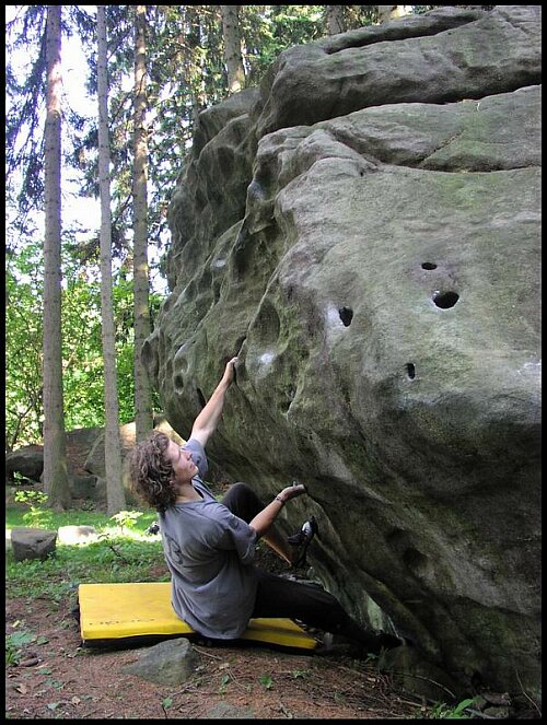 Další den ráno jsme se rozhodli znovu pro Bor a že uděláme pár bouldrů na šutr co je vedle modrý.