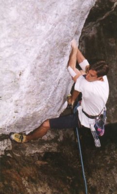 Hopovi se moc chtělo do Jury a jeho přání ( viz. vstupní regule paragraf.2 ) jsou pro členy party rozkazem. Tak se jelo do Jury. Naše dvě auta se potkaly na Krottensee, kde jsme okamžitě naběhli do stěn a kde i místním dredově vyzdobeným hlavám klesaly čelisti nad našimi výkony a hlavně nad výkony našich holek. Mňouky se blejskla přelezením převislé spárky a Hynek s Hopem začali týrat jedno děvět mínus, ale byl tam trochu průvan, tak z toho nebylo nic. Hop měl trápení s rukama. A tak ještě zafačovaná předloktí spíše šetřil, proč se šetřil Hynek nám nám došlo za chvíli neboť zatejpoval prsty a vylezl jeho první, byť spíše boulderovou, devítku v životě Gill swing. Nejtěžší krok této cesty spočívá v kroku za jednoprstovou dírku, to vše v úctyhodném převisu, dále cesta pokračuje již o poznání lepšími dvou a trojprstovými dírkami. Hynkovi toto uplakané jaro, jak je vidět zatím nevadí a tak zamíchává pořadím na prvních místech žebříčku. Gratulujeme !