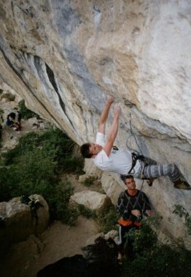 Ráno byla nejdříve trochu kosa a bylo tedy jedno, kam půjdeme lézt a proto jsme šli za sektor Berlín, kde jsme se rozlezli (Comme des phogues 6b). Šimi s Hopem (Harley Davidson 6b+). Ti se pak vydali na převislou cestu Bibendum 7b+. Tam se jim moc nedařilo a tak si to jen zkusili. Já s Janou jsme lezli ještě nějaké dvě cesty jedna pěkná a tu druhou jsem ze strachu zapytlil pod dolezem. Pak jsme s Šimim šli opět na Burinatora 8a . Já si to zkusil dvakrát, ale pak jsem se rozhodl zanechat marných pokusů. Bylo to hodně těžké. Šimi si tam nechal expresky na druhý den . Pak přijeli Luky a spol. (Hynek, Jíťa, Bára). Jana lezla s Mňouky před sektorem Demi Lune. Večer pak bylo v bivaku haló, všichni se tam totiž nakonec vtěstnali. Šli jsme ještě společně pro vodu a Hop zkoušel ještě večer Super Mickeyho 7b. Zatím nic.