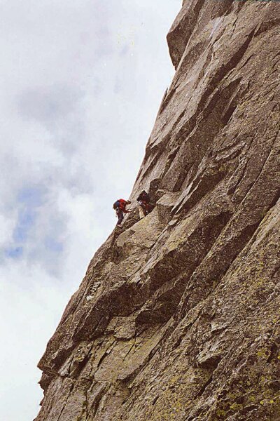Nik v nej nebol, kto vie prečo ? Žeby to bolo tým vetrom a zimou, tak nezvyklou na toto letné obdobie, alebo azda tými čiernymi mračnami valiacimi sa z Poľskej Pšakref strany, ktoré ani tatranská hradba ohromných končiarov nevládala zastaviť ? Postup sa zmenil, nasledovali kolmé platne a zárezy. Prvolezec odliezol k previsu, pod neho doprava a stratil sa druholezcovi z dohľadu.