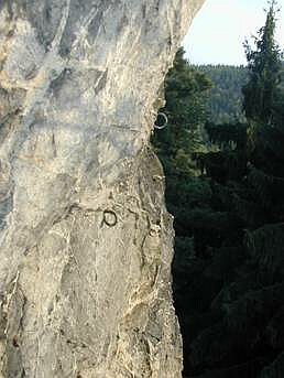 Na závěr jsem nechal Sluneční stěnu a skálu přes údolíčko v oblasti Drábovna. Vpravo u hrany vede cesta od Petra Hejtmánka přes jeden kruh ( VIIc).