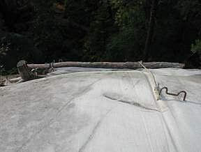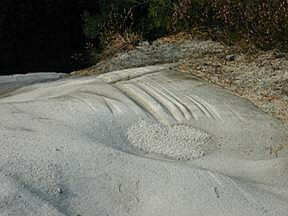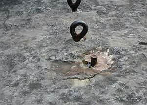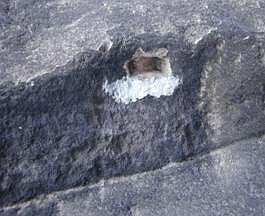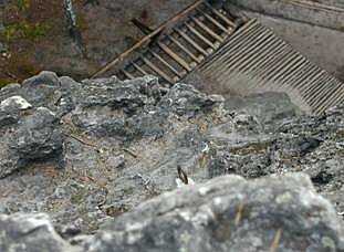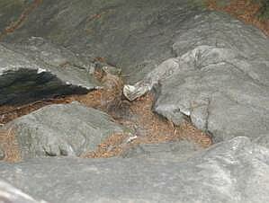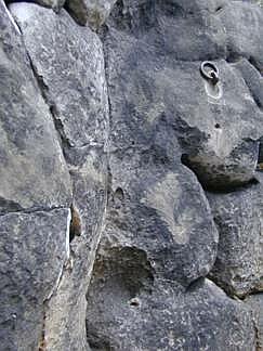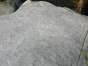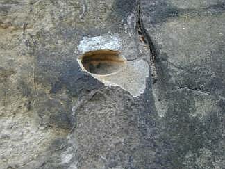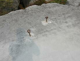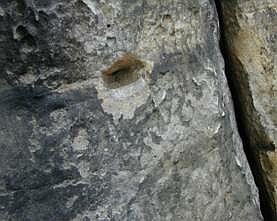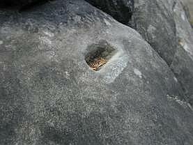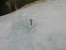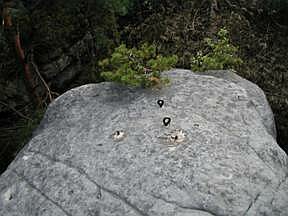 Vrchol skály. Slaňáky a rýhy způsobené slaňováním.