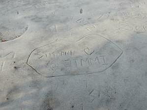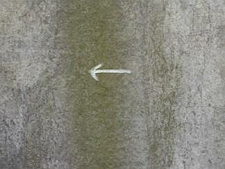 Přístup ke skále naproti sluneční stěně je označen šipkami, které jsou udělány sprejem.