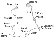 Když přijedete do Bologně vydejte se po dálnici  A14 ve směru Ancona, exit na San Benedetto del Tronto. Pak pokračujte cestou na Ascoli Piceno.