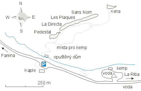 Kemp je jen pár metrů od skal. Nachází se zde i pár míst, kde je možné rozbít stan nadivoko, s tím, že nebudete přímo u auta.