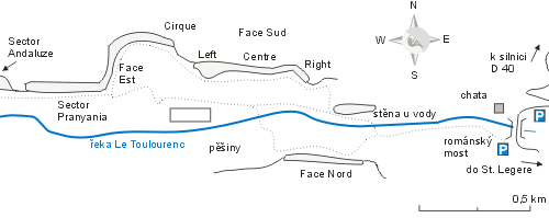 Stěny se nacházejí v údolí řeky La Toulourenc a je možné je rozčlenit do šesti hlavních částí East Face, North Face, South Face (tři části), Cirque, Pranyania a na závěr Al Andaluze. Tyto všechny stěny v podstatě shlédnete hned, když vstoupíte do údolí. Ty jsou také zmapovány a najdete zde největší množství cest, jenže stěny pokračují a táhnou se kam jen oko dohlédne.