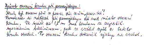 Osazení kruhu při prvovýstupu je samo o sobě zajímavá záležitost, viz faksimile (obr. 7) a přepis  z protokolu o prvovýstupu:   "Kruh byl osazen plně z pozice dle znění „pravidel"! Prvolezec si nadlezl při prvovýstupu až nad místo osazení kruhu. Ve spáře asi 1,5 m nad kruhem se zajistil speciálním vklíněncem, pak se vrátil zpět a takto kruh osadil. Po osazení kruhu dokončil výstup na vrchol".   To je poněkud  divný výklad pravidel. Pro prvovýstupy je pod bodem 8.3. uvedeno: „Kruhy musí být omezeny na nejnutnější případy, kdy nelze zajistit jištění přirozeným způsobem. Přitom nesmí řešit kritický nebo nelezitelný úsek cesty." Kruh zde tedy byl zcela nadbytečný, což vynikne i při  vědomí délky této cesty na první blok.