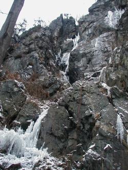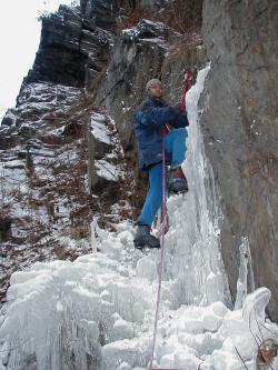 Navíc s potůčkem tekoucí vody. Je to dobrodružné lezení docela věrně simulující zimní tatranské nebo alpské podmínky. Určitě to není nejlepší příležitost pro začátečníky poprvé si ozkoušet led.