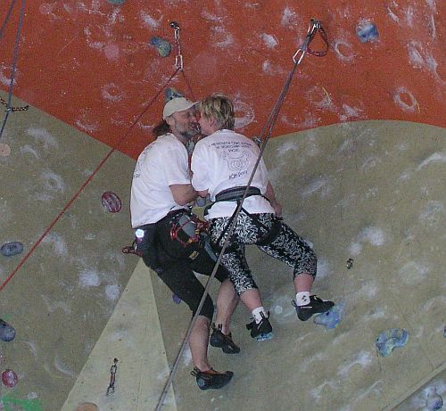 Originální disciplína, kterou loni vynalezla Eliška Karešová v rámci závodu veteránů Viagra Cup v Liberci a letos uvedl v život až k mistrovství republiky Vláďa Houmy Slouka, spočívá v tom, že dva lezci jištěni lanem shora, spojeni půlmetrovou smyčkou lezou najednou jednu cestu a mohou přitom použít jakkoli povrch spolulezcova těla. Bylo vidět bizardní propletence, asi nejkurioznější byla disciplína rodiče s dětmi, kdy v několika případech tatínek své dítko pěkný kus cesty prostě táhl ala lezení se zátěží.