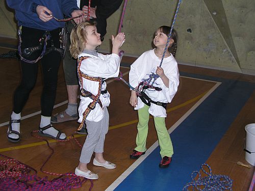 Úlohu předlezců sehrály dvě nejmenší holčičky a ukázaly bez přípravy, jak se to vlastně leze