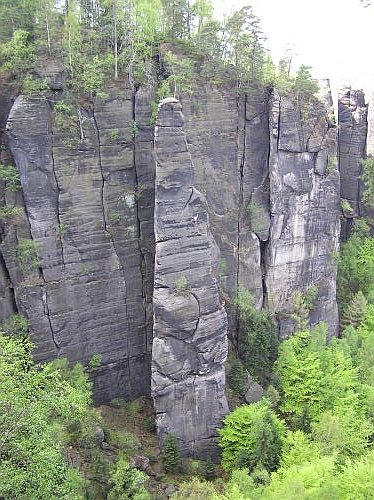 Náhle se vyjeví obrysy Bloszstocku, Falku, Pfaffensteinů a dalších známých míst a spojují se do pomyslné plastické mapy. Ale ani nyní ještě není zodpovězena otázka, kde jsou všechna ta místa tak potřebná pro uspokokojení nenasytných chtíčů. A jsou tu někde vůbec? Vždyť jich skoro nevidno. Při dalším přiblížení už  téměř celé zorné pole vyplňují stěny. Chtělo by se zvolat přihořívá, ale ještě chybí kousek, kousíček. A pak, pak už oči vyhledají první kruh, a o něco výše další, a ruce osahají skálu a v hlavě už se rojí způsoby jak se odlepit od země. Ještě se pokochat stránkami průvodce, ztotožnit psaná slova se skutečností, a s radostí zjistit, že kousek vedle vede další cesta. A proboha, na sousední věž zase jiná. A věží jsou stovky a cest tisíce. V ten moment je člověk pohlcen. Z velkého výhledu na počátku, který lezci nenabízel zdánlivě nic, se náhle stává ráj nabízející více než se dá unést. A takhle nějak je to přece zapsáno v povaze lidské, mít více než se dá zvládnout, ne?