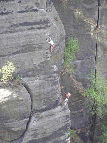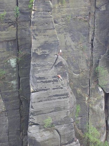 Příležitost vychutnat všechno krásno musí být prostě a jednoduše propojena s chyty v rukou, stupy pod nohama a hlavou v oblacích. Pak je prožitek úplný. Někdy jde všechno jako na drátkách a jindy se selanka změní na boj o život. A to už se pomalu dostávám k jádru dnešního dílu. Občas se záměr přelézt nějakou cestu změní v dobývání, za které by se nemusel stydět ani Caesar. Z pohledu současně sportovního se z takového zážitku málokdy vyklube hodnotný výkon, ale právě Sasko dovolí mít radost i po podobném přelezu. S Jehlou jsme si jeden užili při nedávném Máji v Sasku.