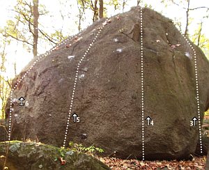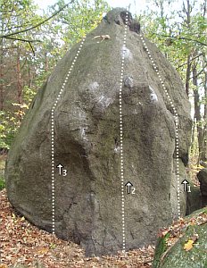 Kámen je to nevelký, ale docela pěkný a v budoucnu bude žřejmě z oblasti Pod hradem, kde ho nyní naleznete v průvodcích, přesunut do oblasti Stebno, která skrývá ještě množství možností i prastarcých boulderů. Takže do oblasti Pod hradem je zařezen zřejmě jen dočasně, protože je od ostatních sektorů z této oblasti docela vzdálený.