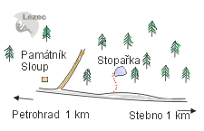 Stopařka stojí asi tak 10m od silnice spojující vesnice Petrohrad a Stebno. Pokud pojedete z Petrohradu, minete hřbitov, pak odpočku k Potočním kamenům, památník s chybějící pamětní deskou a kousek za ním ji uzříte jak váhavě vykukuje v protisměru z lesa.