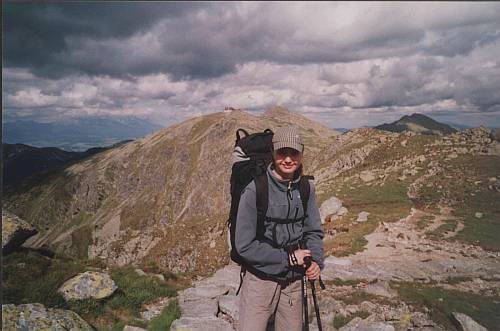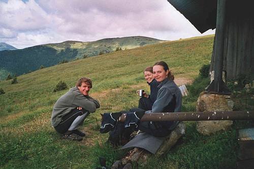 Vrcholové foto, pár pohledů do údolí a zpět k batohům. Ze sedla pak už jen klesáme, až do sedla Čertovica. U pramenu kousek před chatou M.R.Štefánika doplňujeme zásoby vody a u chaty si dáváme dvacet. V další části hřebenovky už se mění vzhled krajiny. Skály střídá tráva a kleč. Cesta je hodně příjemná, až na závěrečný sestup do Sedla. Je kolem páté odpoledne a někteří lidé se ještě teď škrábou nahoru. Vůbec jim to nezávidíme. Ještě to mají dost daleko! I když jsme chtěli dojít až do Telgártu, rozhodli jsme se tady naše putování ukončit. Nemělo by cenu se honit, protože se nám ta cesta nějak natáhla. Rozděláváme stan kousek za penzionem na louce a s dalšími zážitky končíme putování po západní části hřebene Nízkých Tater.