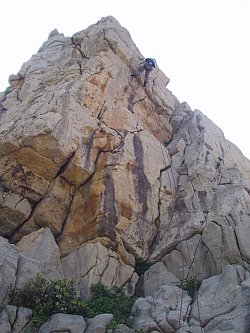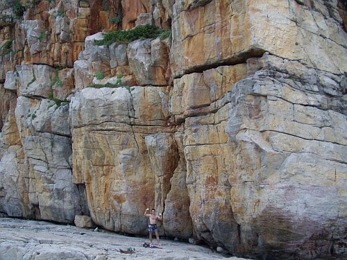 Odtud již pokračujete pěšky dál podél pobřeží směrem na jih až narazíte (cca po 300 metrech) na první útesy se skalními cestami.