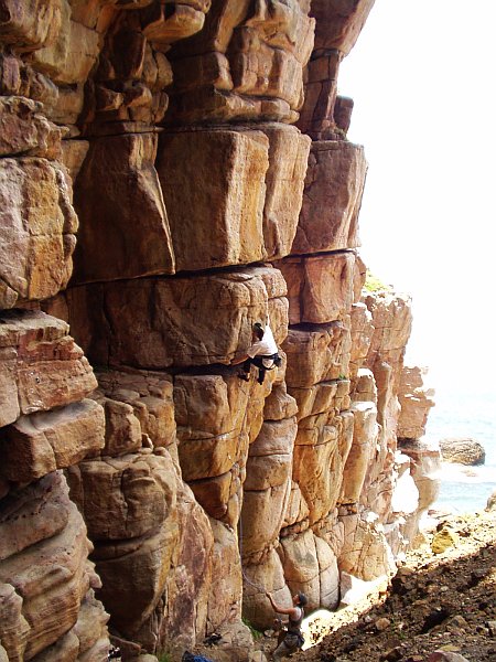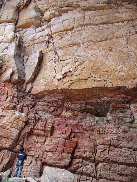 Na tomto místě je třeba podotknout, že tak 50% cest má jenom slaňovací jištění a místňáci tyto cesty brousí top rope, výjimečně je lezou klasicky za použití vklíněnců a podobného harampádí. Nýty, které ušetřili na těchto cestách, zřejmě použili na zajištění těch ostatních, proto musíte občas dát pozor, abyste při cvakání jistění nenabrali lano pod poslední zapnutou expreskou. Možná, že tato skutečnost, vzhledem k místnímu agresivnímu podnebí, není samoúčelná; některé nýty jsou totiž trochu narezlé.