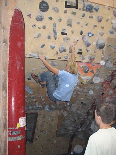 Další paráda je dvouhodinový limit a nalož s ním jak chceš! Žádnej stres typu: Teď musíš. Sice jsem uprostřed boulderu dostal čočku, že už mam po limitu, ale byl to omyl, čas sem si hlídal. Když to udělá každý, nebude co řešit.
