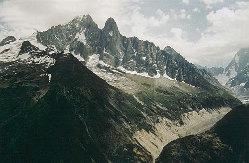 Ten vyšší kopec nalevo měří 4 122 m a 29. června roku 1865 na jeho vrcholu jako první stáli horolezci Almer, Biner a famózní osobnost té doby E. Whymper. Dosáhli vrcholu obtížným výstupem zasněženou roklí s „žebrovanými stěnami“ (dnes Whymperův kuloár), která shlíží na ledovec Talèfre.