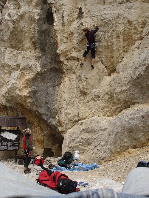 Povedli se vam docela pekny fotky..tzn. takovy ze to vypada jako pomerne tezky lezeni..:)) ale myslim si ze by neco takovyho clovek bez prilby skouset nemel...ja bych se bal bez prilby pod ancou jen projit...clovek nikdy nevi kdy neco zezhora prileti..Kdyz uz nic tak aspon prilbu na kolo..