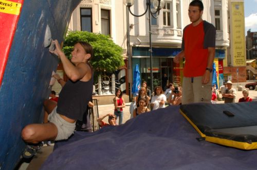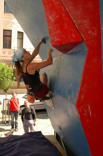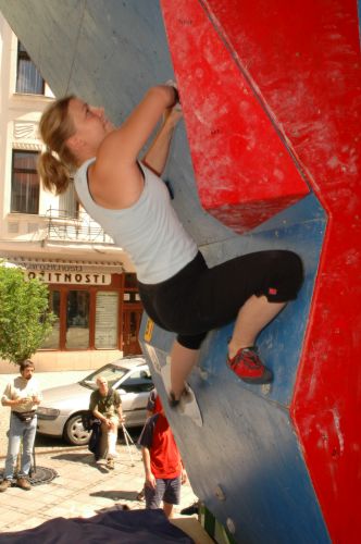 18.6. 11:05 Věrka Kostruhová leze jako druhá, prvním bouldrem se suše prošla, favoritky hned ze startu.