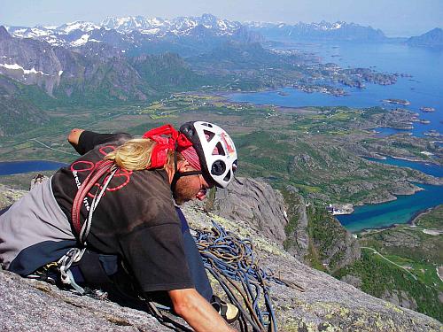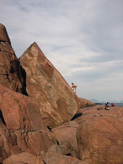 Červen 2005. Partička lezců v jiném složení opět opouští republiku směr polární kruh a ještě o kus dál… Z původního osazenstva jsem zbyl pouze já. Asi jedinej jsem věřil, že tam musí být taky někdy pěkně, což kupodivu tentokrát vyšlo. Ze čtrnácti dní pobytu bylo deset takový vedro, že na místních „plážích“ bylo rekreantů jak uprostřed hlavní sezóny na Riviéře.