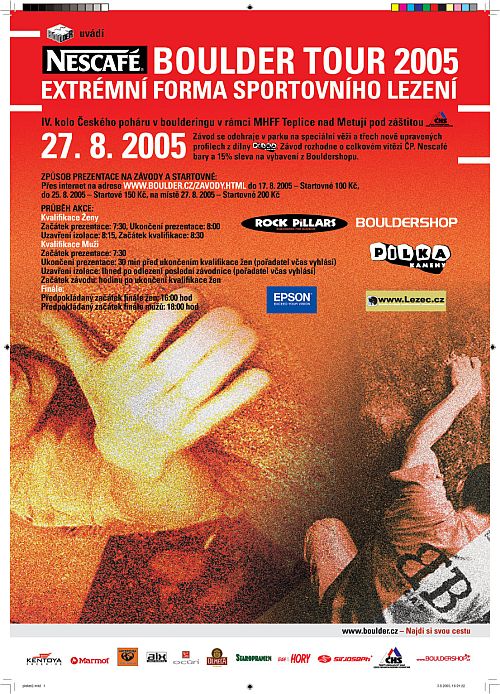 smIV. kolo Českého Poháru proběhne 27.8.05 v rámci Mezinárodního Horolezeckého Filmového Festivalu v Teplicích nad Metují.