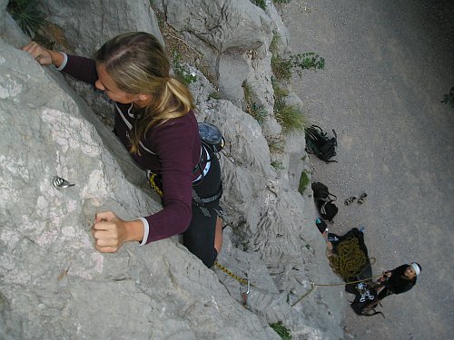 19.9. Milé překvapení poránu, mračna se trhají, objevují se první kousky modré oblohy a dobrá nálada se vrací. Vyrážíme pěšky ke skalám a vychutnáváme atmosféru klidného rána. Okolo nás voní borovice a před námi se již objevují první známé skalky. Z procházkové pohody nás vyrušil až rámus zbiječkobagru a další nepříjemnou situací bylo vstupné, které opět podražilo z 60kun/5vstupů na 90kun/5vstupů . Platíme a jdeme se rozlézt. Začínáme zlehka: Via normale 3, Orao 5c+ ,Hare Krišna 6a+ pak přišly zástupy tůristů, které nás přinutili opustit pozice u cesty a zahnaly nás k západní stěně Anici Kúk, kde jsme si dali dvě délky v cestě Bora 4c,4c. Při návratu jsem otestoval prsty v cestě Shogooth 6c+ a zdařilo se OS :D .