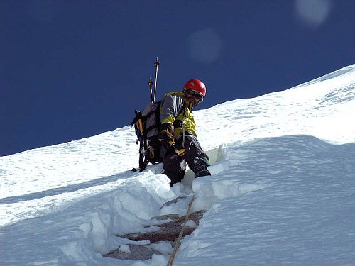 Tudíž jsme se nedostali ani do nejobtížnějších míst, do seráků. Přesto hodnotím náš pokus jako dobrý a hlavně jako slibný vstup do světa velkého horolezectví pro Ládise, Martina, Janka a další. Letošní rok byl ve znamení opravdu mimořádně špatného počasí a prvních 14 dnů nám střídavě pršelo nebo sněžilo. Nebudu zde popisovat náš samotný výstup, není na něm nic moc zajímavého. Snad jedině to, že byl objektivně nebezpečný (metr čerstvého sněhu) a  namáhavý.