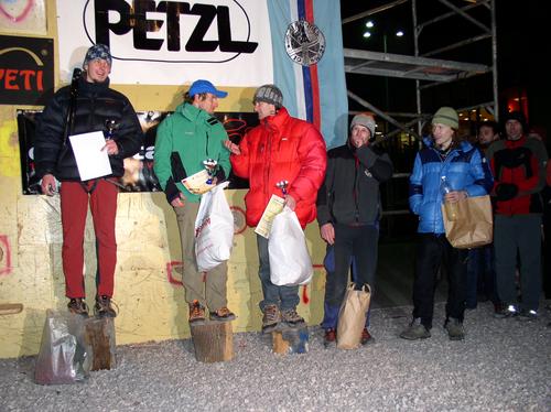 Hned poté nastoupil první z finalistů -- Gerd Donhüber. V první části bylo vidět, kdože je pravidelným účastníkem závodů v ledu: místní "ľadík", tedy bukový kmen, snadno přeběhl a už stoupal jako dým směrem k "záverečnej ľadovej záclone", zde simulované zavěšenou fošnou. Opět došlo na patní háky -- nebylo za co se vyvěsit a sklepnout, a tak po ukrutném boji zvítězila gravitace -- kousek od topu! Jako druhý nastoupil český representant Vašek Šatava a po něm domácí borec Juraj Švingál, kterého v rychlém běhu celou cestou zastavila až ona volně visící deska. Jako další se o její přelez pokoušel Radek Zoban Lienerth, ale nepomohla mu ani šuka (po slovensky paragán) -- přece jen tak silový prvek na samém konci vyžaduje velkou rezervu. Další český závodník -- Stanislav Kvak Hovanec -- zase hojně využíval brutální fixy, ale právě ty mu ubraly silovou převahu nutnou pro závěrečnou pasáž. Pepa Straka, který v rukou třímal vlastnoručně vyrobené závodní Raveltiky, bohužel vypadl ještě před nejtěžším místem, Andy Kolárik také na top nedosáhl, a tak se čekalo na dva nejlepší. Zůstane vítězství na Slovensku, nebo poputuje do nedaleké ciziny (do Brna)? Dušan Janák zvaný Stoupa neváhal pobavit diváky pádem hned v úvodu, ale naštěstí všechno ustál a tak mohl pokračovat. Ve výlezu z koutu do vrchní části cesty si vymyslel no-hand rest a tak celkem zdařile sklepl a zvažoval jakou technikou dosáhnout topu. Vymyslel to asi dobře, protože přeběhl zrádnou fošnu a už už se natahoval do volně se houpajícího špalku, když jej najednou strhla neúprosná gravitace a Stoupa se pořádně proletěl -- nezvládl totiž zapnout expresku. Top tedy stále odolával. Bude se opakovat závod z minulého roku, kdy celou finálovou cestu přelezl jen jeden závodník? Poslední finalista Gabo Čmárik se cestou prošel bez zaváhání. Poslední překážku zdolal ve velkém stylu a když odpočíval ve visu za jednu ruku, stěna se otřásala výkřiky diváků. Pár posledních záseků, namotat se na top, zapnout poslední expresku, a máme tu vítěze!