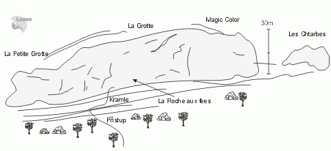 je na těchto skalách. Stejně jako Orpierre, které náleží údolí řeky Buech v paralelním údolí se nachází menší nová oblast asi s 80 cestami. Kdo by tedy při lezení v Orpierre zatoužil po změně, může přejet několik kilometrů a zalézt si na pěkných skalách s diametrálně odlišným typem lezení. Skály se také často nazývají podle vesnice pod nimi, Chateauneuf de Chabre.