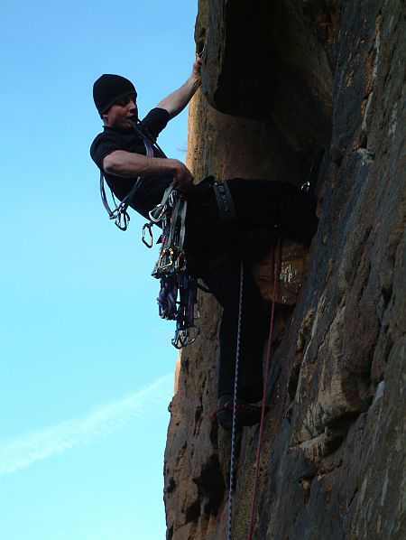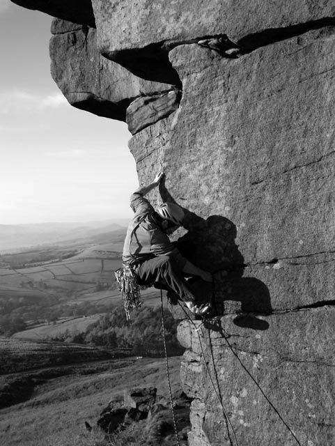 Něco rychle baštíme a jedem do Stanage. Tenhle den se prostě povedl. Žadné hrocení extremů, žádná vyklepaná historka. Pohodový den plný lezení. Na závěr dne se odhodlávám vytáhnout HVS 5b (po včerejší spáře mám z toho stupně nějak respekt). Ale je to pohoda. A přesně podle průvodce, který