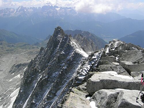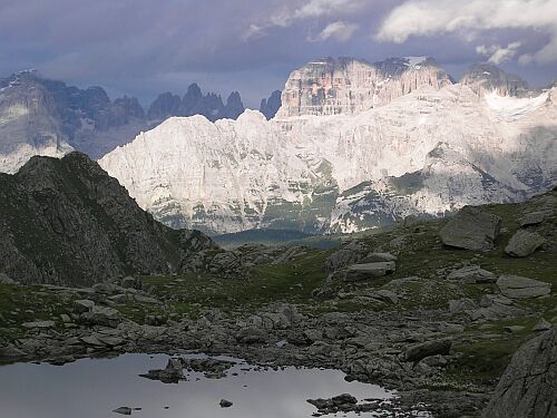 Přestože následující dny počasí opět seslalo nějaký ten déšť, nebránilo nám seznámit se blíže s krajinou Brenty - nejhezčí části Dolomitů a Adamella prostřednictvím skvostných výhledů a krátkých, zato vcelku náročných výstupů na blízké vrcholky Cimu Lanciu ( 2318 m ) a Pala di Dalgón ( 2410 m ). Všichni byli nadšeni.